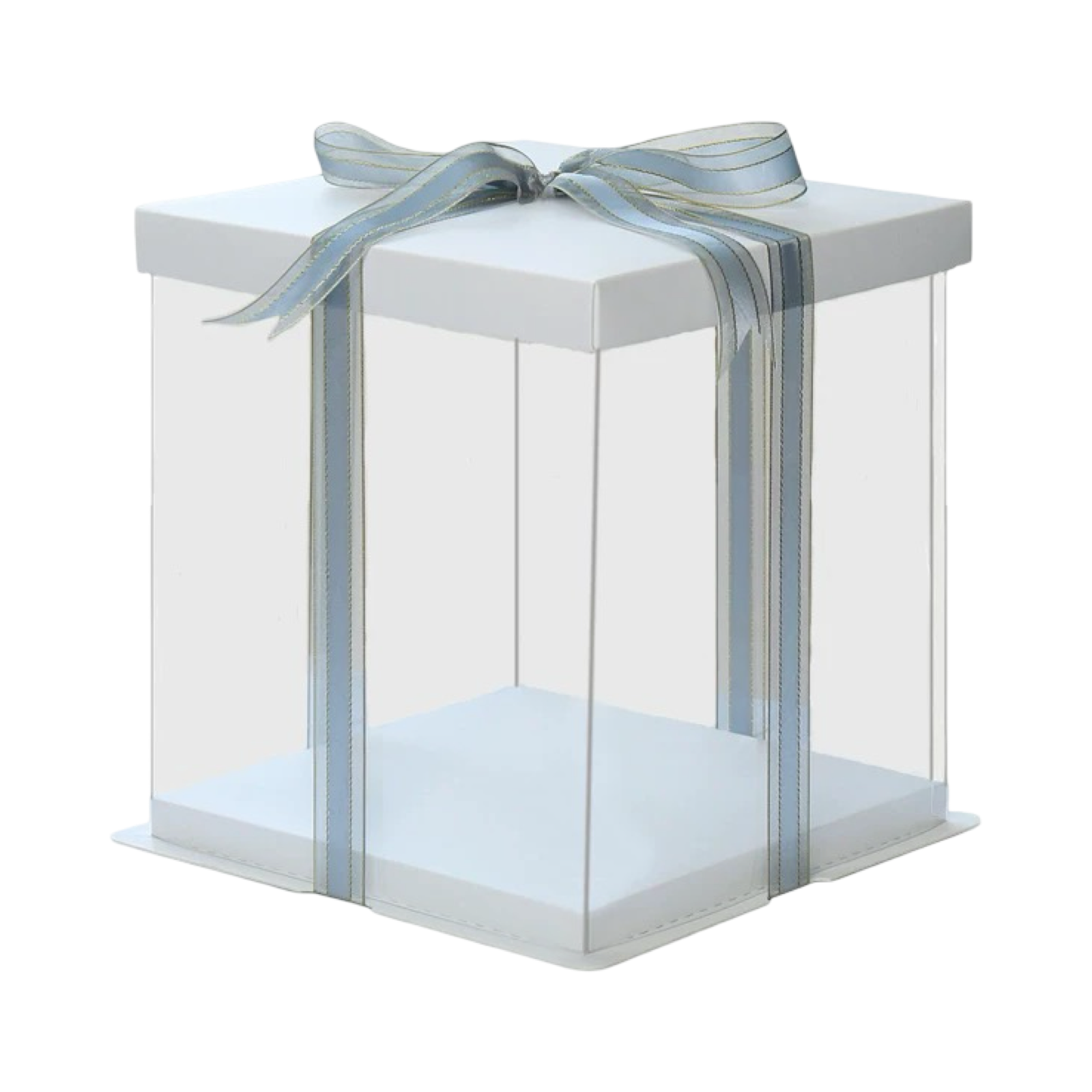 8寸單層透明蛋糕盒[白色蓋紙蓋,含絲帶,顏色隨機]